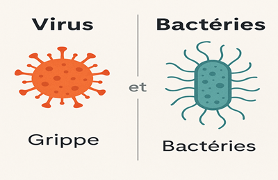 Les antibiotiques sont des médicaments destinés à lutter contre les infections bactériennes. En revanche, la grippe est causée par le virus influenza, contre lequel les antibiotiques n’ont aucune efficacité (CDC, 2023). Utiliser des antibiotiques dans ce cas ne soulage pas les symptômes, n’accélère pas la guérison et n’empêche pas les complications virales.