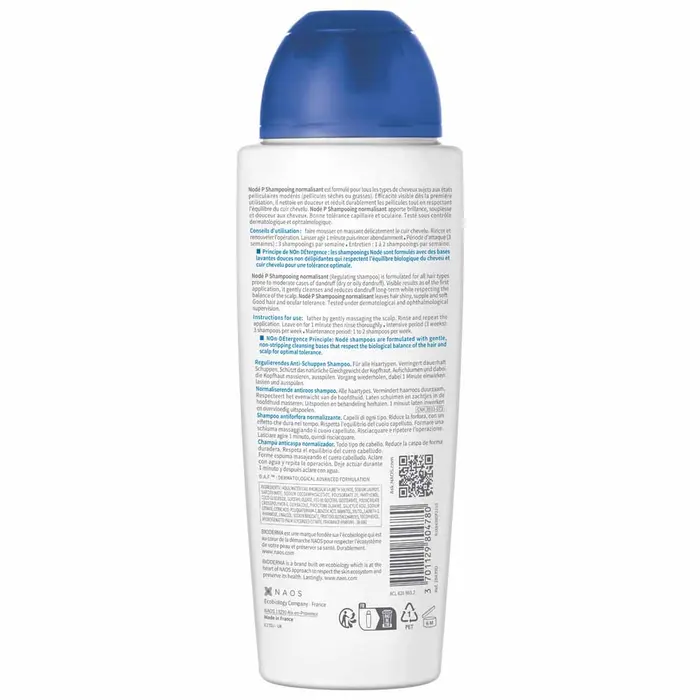Nodé P est un shampooing antipelliculaire dermatologique doux. Adapté à tous les types de cheveux, il élimine en douceur les pellicules sans agresser le cuir chevelu.