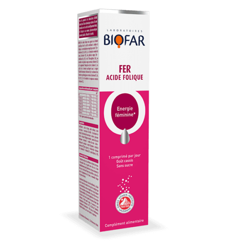 Une déficience en fer est fréquente chez la femme et peut rapidement conduire à une fatigue et un manque d’énergie. Chez la femme enceinte particulièrement, il est vivement recommandé de se supplémenter en acide folique pour la bonne croissance du bébé. N’attendez plus ! Les Laboratoires Biofar ont développé pour vous « Fer Acide folique », une formule riche et complète au bon goût de cassis, pour préserver votre énergie féminine au quotidien ou en période de grossesse.