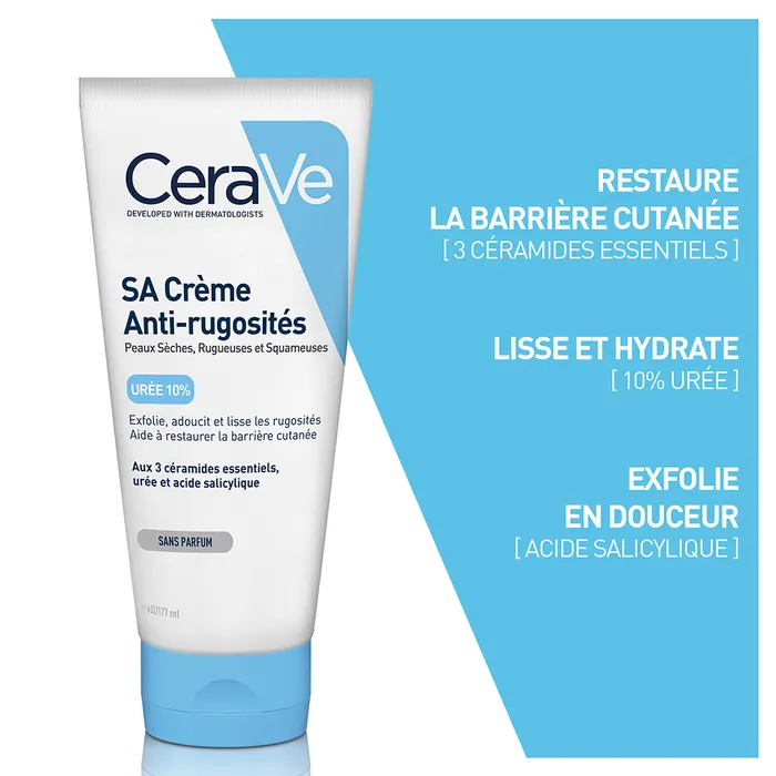 CeraVe Crème Anti-Rugosités est un soin hydratant spécialement conçu pour les peaux sèches, rêches et sujettes à la desquamation. Elle est également recommandée pour les personnes atteintes de kératose pilaire, une condition dermatologique caractérisée par l’apparition de zones rugueuses et de petits boutons.