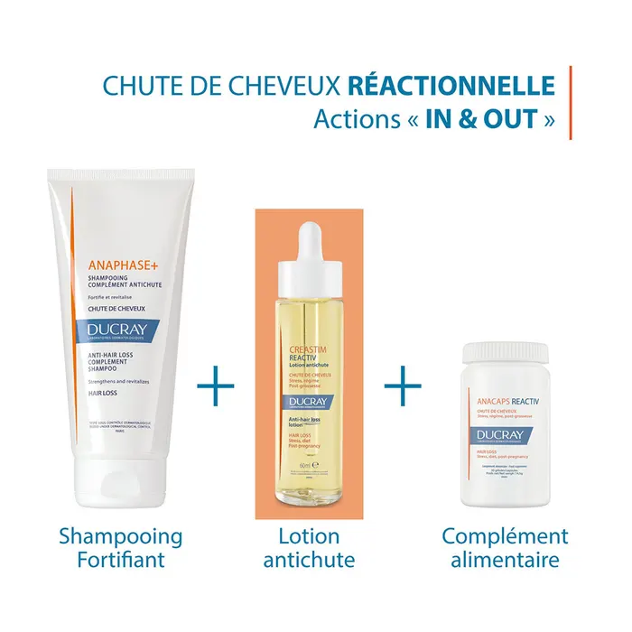 Le complément alimentaire ANACAPS REACTIV participe à stimuler la POUSSE DES CHEVEUX grâce à la Prêle des Champs qui aide à favoriser la croissance et renforcer le cheveu¹.