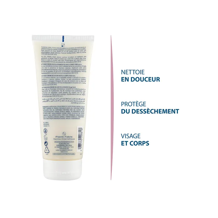 Ictyane crème lavante douceur, visage et corps, nettoie la peau sans l’agresser. Préserve l’équilibre cutané et prévient le dessèchement.