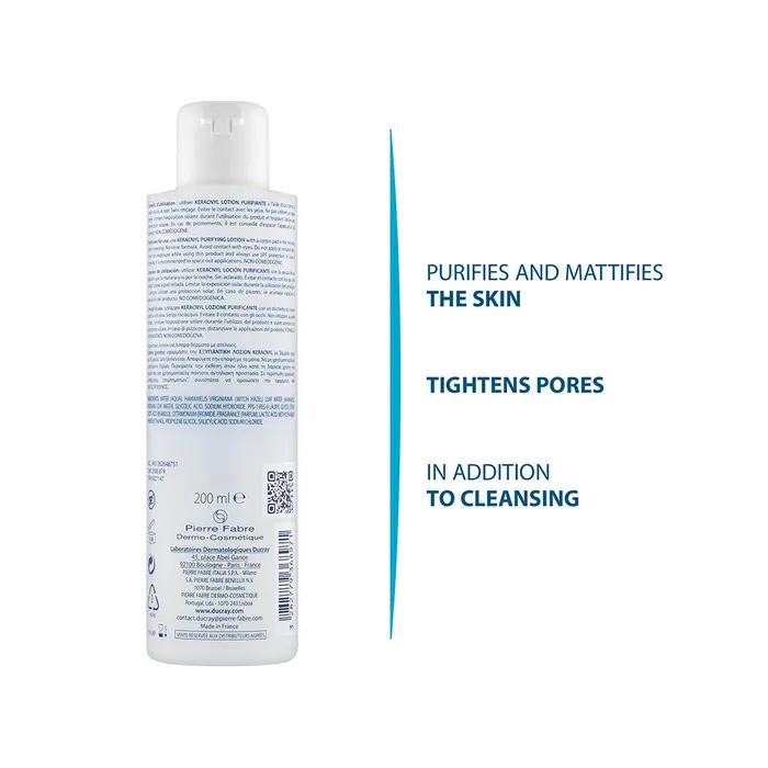 La Lotion Purifiante Keracnyl est un soin deux en un : en effet, elle peut être utilisée comme soin d’hygiène sur l’ensemble du visage et comme soin traitant localement sur les imperfections.