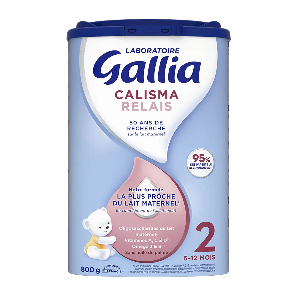 Le Laboratoire Gallia a mis au point Calisma 2, une formule infantile en relais de l’allaitement maternel, qui répond aux besoins nutritionnels spécifiques de votre bébé de 6 à 12 mois, dans le cadre d’une alimentation diversifiée, conformément à la réglementation.