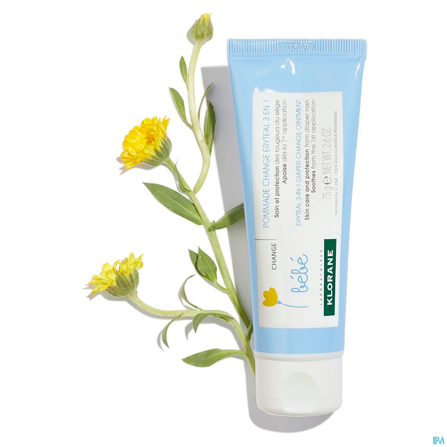 La Pommade Change Eryteal 3 en 1 au Calendula de la gamme Bébé de KLORANE est élaborée pour apporter soin et protection aux rougeurs du siège de bébé et aux irritations qui sont générées par la sécheresse.Cette pommade est formulée avec du Calendula apaisant obtenu à partir de fleurs issues de culture bio.