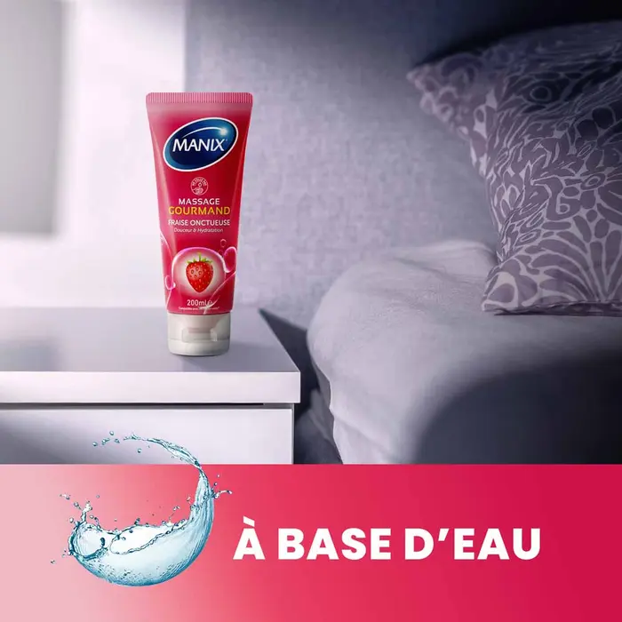 Le Manix Massage Gourmand Fraise Onctueuse transforme chaque massage en un moment de détente et de plaisir partagé . Sa formule à base d’eau procure une hydratation douce tout en laissant la peau soyeuse, sans effet gras ni collant. Son parfum de fraise aux notes sucrées et légères ajoute une touche de gourmandise à vos instants intimes, pour une expérience à la fois sensorielle et savoureuse.