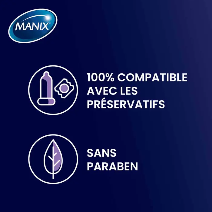 Découvrez le Manix Infiniti Gel Lubrifiant Effet Longue Durée, un lubrifiant intime à base de silicone offrant une lubrification prolongée et un confort optimal pendant les rapports. Sa texture veloutée et soyeuse procure une sensation de glisse durable, jusqu’à trois fois plus longue qu’un lubrifiant classique à base d’eau, pour une expérience sensorielle intense et fluide, sans interruption.