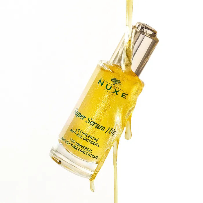 Fusion des expertises du Laboratoire NUXE sur les huiles végétales et les soins anti-âge, Super Serum [10] est le soin essentiel de toutes les routines anti-âge, pour toutes les peaux. NUXE utilise pour la première fois dans ce concentré anti-âge universel une encapsulation micro-fluidique : sa formule à l’Acide Hyaluronique naturel est infusée de milliers de micro-billes d’Huiles Végétales fractionnées.